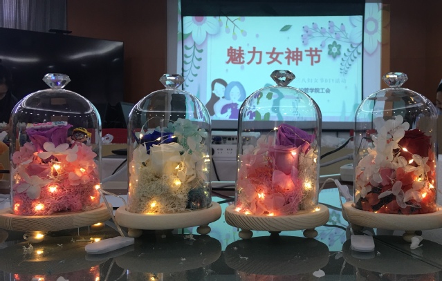 伴着暖日春风,“三八”国际妇女节如期到来。为使护管学院女职工度过一个温馨而有意义的节日,学院工会组织开展了庆祝“三八女神节”系列活动之永生花制作专场。