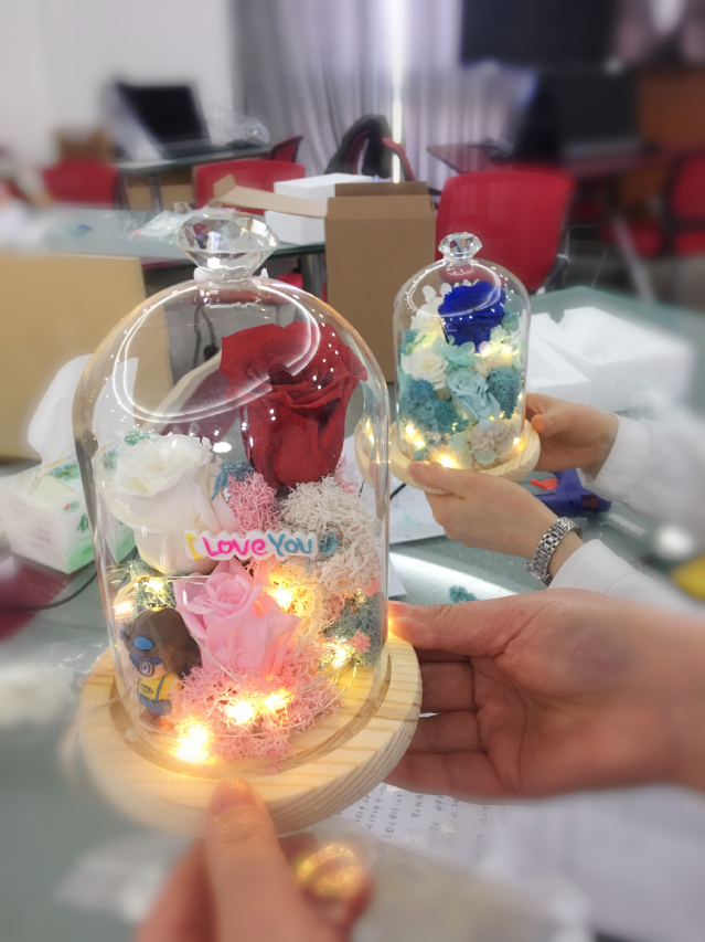 永生花,又叫“永不凋谢的鲜花”,是使用玫瑰、康乃馨、蝴蝶兰、绣球等品类的鲜切花,经过脱水、脱色、烘干、染色等一系列复杂工序加工而成的干花。可以保持美丽花姿3年以上的永生花,代表着“亘古不变的爱情”、“永远的幸福”、“美丽永恒”。带着这些美好的寓意,学院女教师们在专业老师的指导下,细心地配色、插花、固定、装饰,当环绕几圈的小灯亮起时,瞬间感觉自己开启了美妙的新征程。活动中,女教师的仔细、耐心、自信、满足、愉悦,让大家感受到了花美、人美、心更美。活动当天,又恰逢植树节,大家在“种植”永生花中栽下希望,留住美丽,守住快乐,勤奋耕耘,静等收获!
