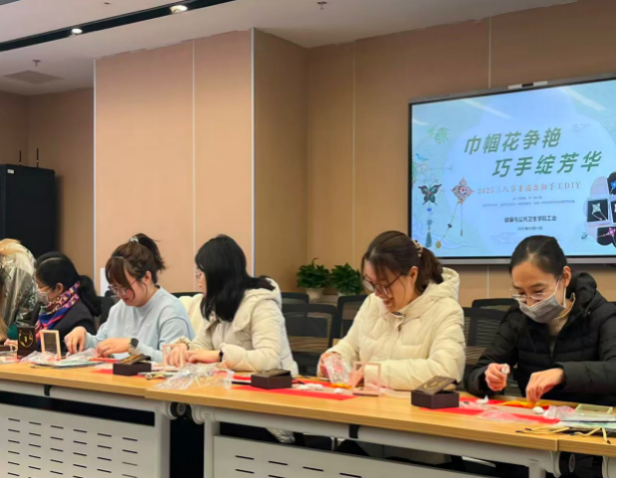 2025年3月14日,健康与公共卫生学院工会开展了非遗盘扣手工制作活动,共20位女教职工参加,占学院女性总数的77%。作为深入贯彻落实习近平总书记关于妇女工作的重要论述,弘扬中华优秀传统文化的一次成功的实践活动,受到了学院广大女性教职工的欢迎和好评。