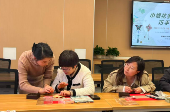 活动伊始,讲解老师向大家展示了非遗盘扣的历史脉络与文化内涵。随后,女教职工们边进行盘扣制作,边畅谈家庭生活与工作进展,现场气氛欢乐融洽。