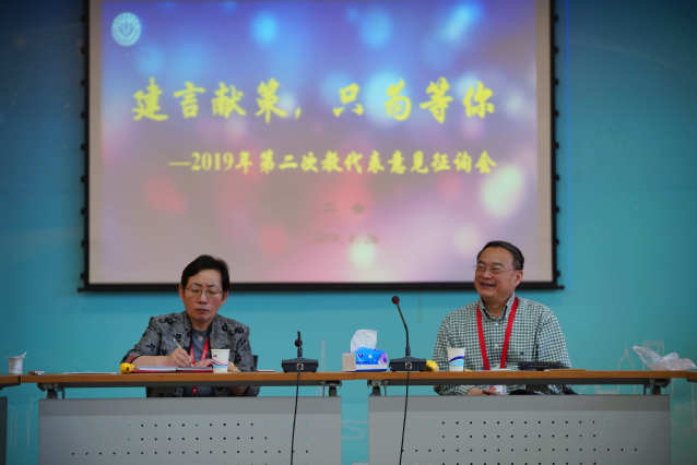 为进一步了解教职工近期关心、关注的热点和工作推进的难点,快速有效地传递学校信息、清楚地解读学校相关方面的政策,加强教职工与职能部处的沟通交流,共同推进学校民主管理工作,于2019年4月26日中午,在南苑7号楼403会议室召开2019年第二次教代表意见征询会。党委书记郑沈芳、校长黄钢,校办、科技处、教务处、人事处负责人及我校部分教代表30多人出席会议。会议由工会常务副主席凌文惠主持。