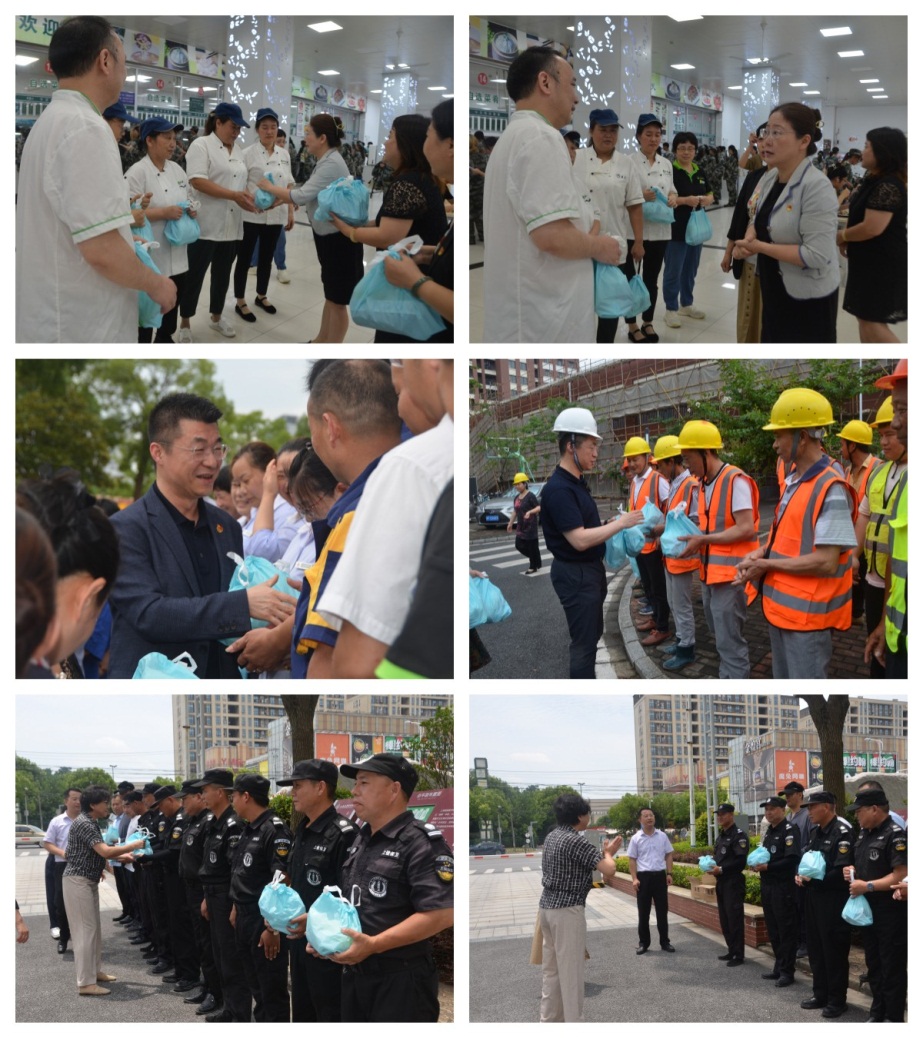慰问现场,校领导与员工一一握手,并与相关职能部门负责人一起,亲手分发防暑物品,传递着对每一位员工的深深关怀和无尽感谢。校领导和员工交谈中再三叮嘱:安全第一,身体保重,学校的安宁、校园的整洁和美丽、师生的服务保障离不开你们!情真意切的慰问使员工们深受感动,纷纷表示一定守好学校一方平安、确保学校暑期的正常运作,不辜负领导的嘱托。
