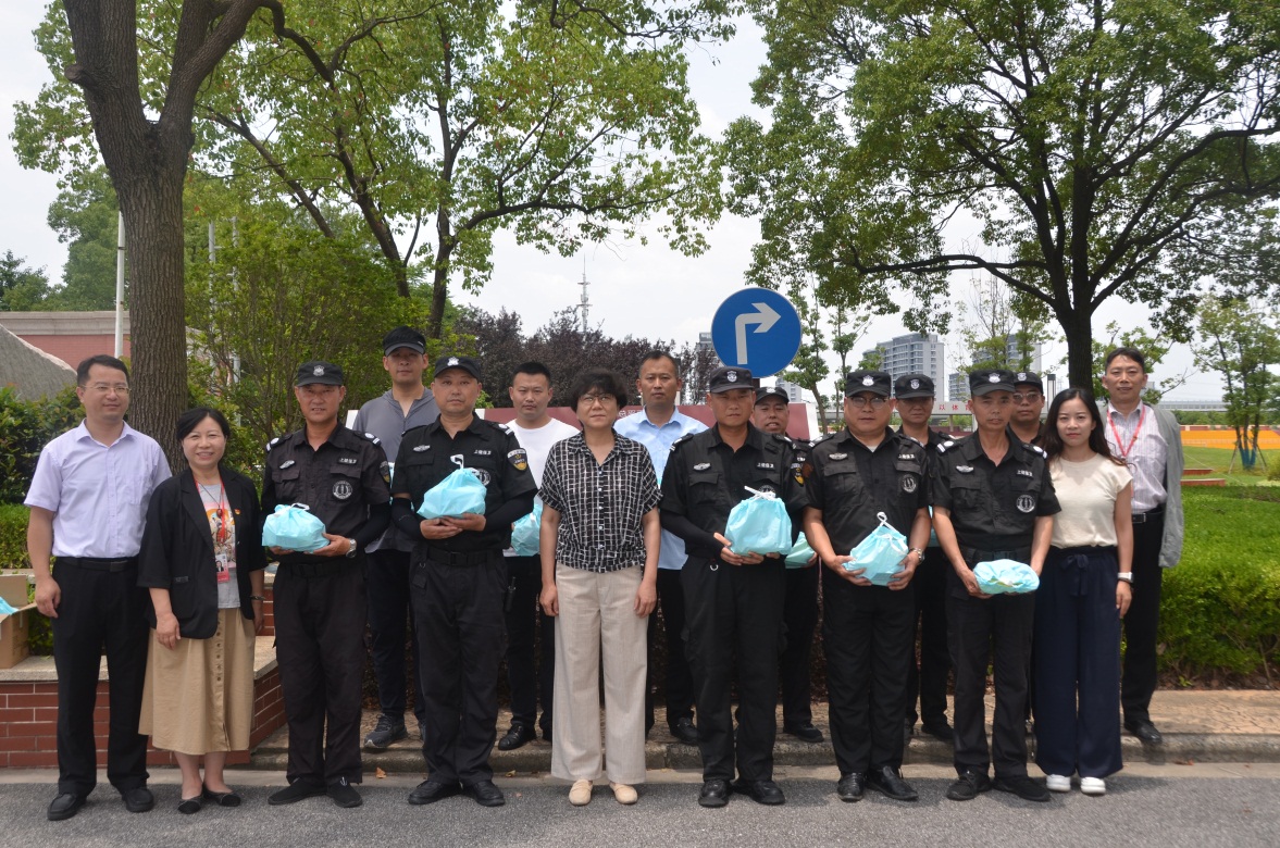 连日来,上海持续高温,闷热暑气裹挟着滚滚热浪席卷校园,广大后勤、安保、基建工地和校园管理服务一线的员工坚守工作岗位,战高温、斗酷暑,用自己的辛勤汗水维护着校园的平稳有序运转。为进一步做好夏季劳动保护和防暑降温工作,有效预防和控制高温中暑和各类生产安全事故的发生,切实保障广大教职工的安全和健康,校工会联合后勤、基建、保卫等部门组织开展“夏送清凉”的慰问活动。党委书记郭永瑾,党委副书记、校长吴韬,党委副书记、工会主席于莹及相关职能部处负责人一同前往学校超市、食堂、物业、基建工地、安保门岗进行慰问。