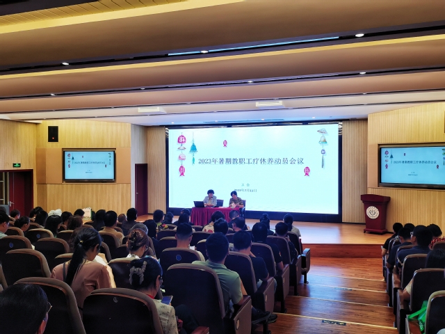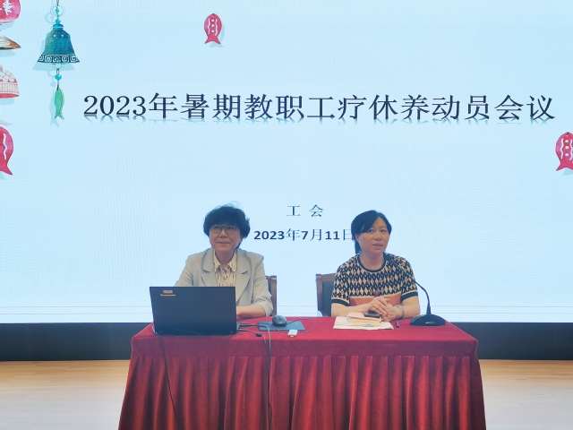 2023年7月11日中午十二点半,在北苑1号楼200人报告厅举行我校教职工2023年度疗休养出团动员会议,本次共有202名教职工报名参加湖南张家界、内蒙古鄂尔多斯、广东潮汕、甘肃张掖、福建泉州共五条线路6个团的疗休养活动。工会常务副主席凌文惠主持会议,党委副书记、工会主席于莹参加会议。