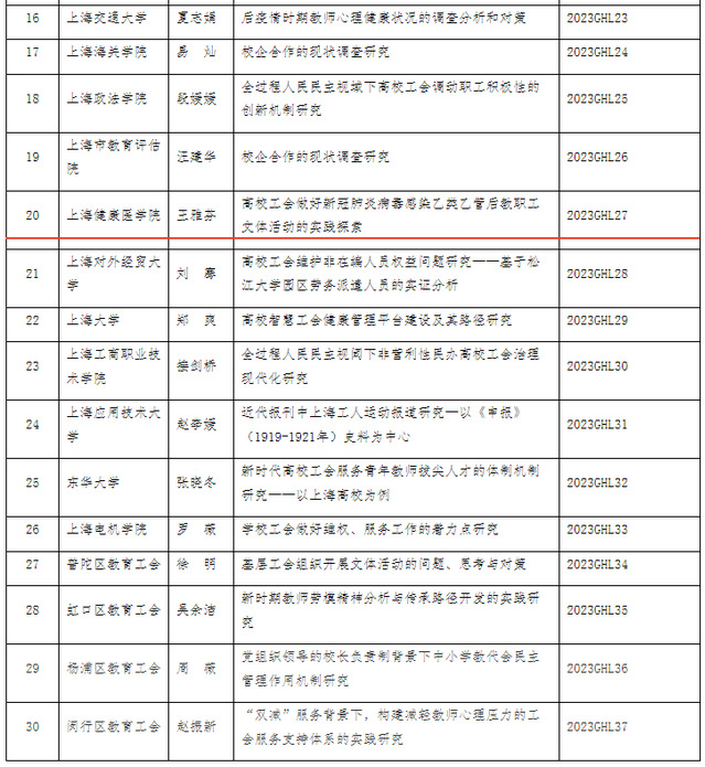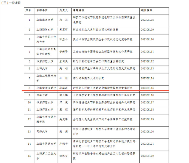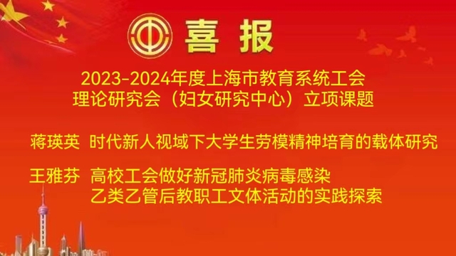 现经过专家评审,上海市教育工会同意立项2023-2024年度教育系统工会理论研究专项课题3项,重点课题7项,一般课题30项,妇女理论研究专项课题1项,重点课题1项,一般课题8项。现对立项课题公布如下: