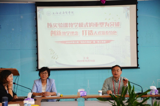 “以实验课教学模式的重塑为突破,创新教学理念,打造人才培养特色”为主题的2020年第三期校长午餐会暨“教工茶座”于10月14日中午在南苑7号楼“教工之家”403多功能会议室召开。校长黄钢,党委副书记于莹、党校办、教务处、发展规划处、基建处、后勤服务中心、信管中心、教学实践中心负责人;基础医学院、医学技术学院、药学院、护管学院、临床医学院、外语国交教学部、公共卫生学院院长及相应学院部分教师代表40余人参加此次会议。会议由工会常务副主席凌文惠主持。