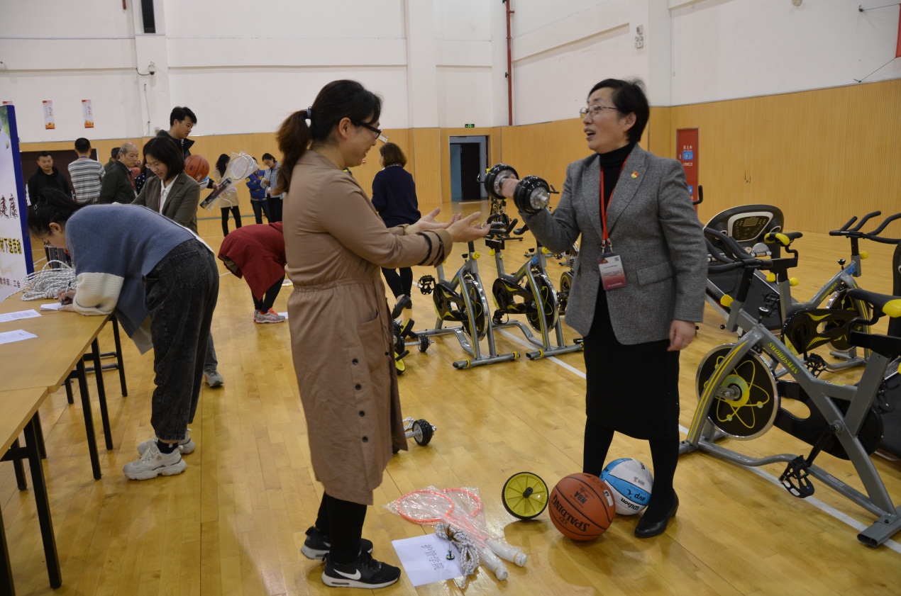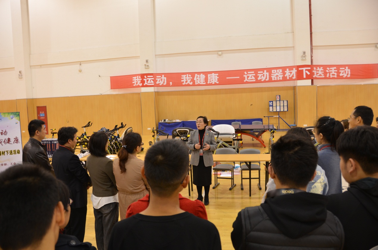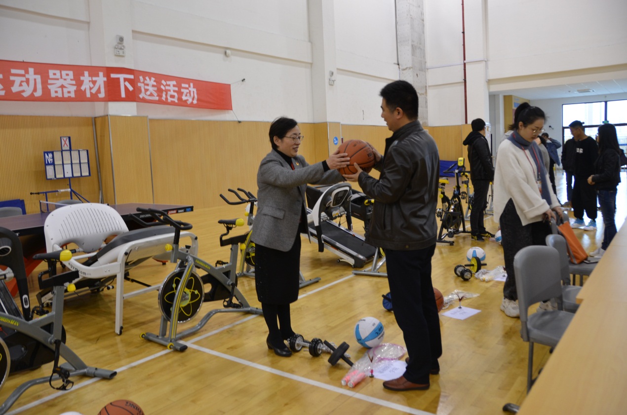11月22日中午,党委书记、工会主席郑沈芳,宣传部部长李兆伟,体育教学部部长王洪彪,工会副主席凌文惠及各部门工会主席、委员们参加活动。郑书记说道:现在我校在全面实施健康校园行动计划。我们实践先行,为大家采购了一批运动器械,大家带回各自部门,让老师们加强锻炼,都运动起来,都健康起来,大家共同开启健康的生活方式。简短的开场发言后郑书记亲自为各部门发放运动器材。