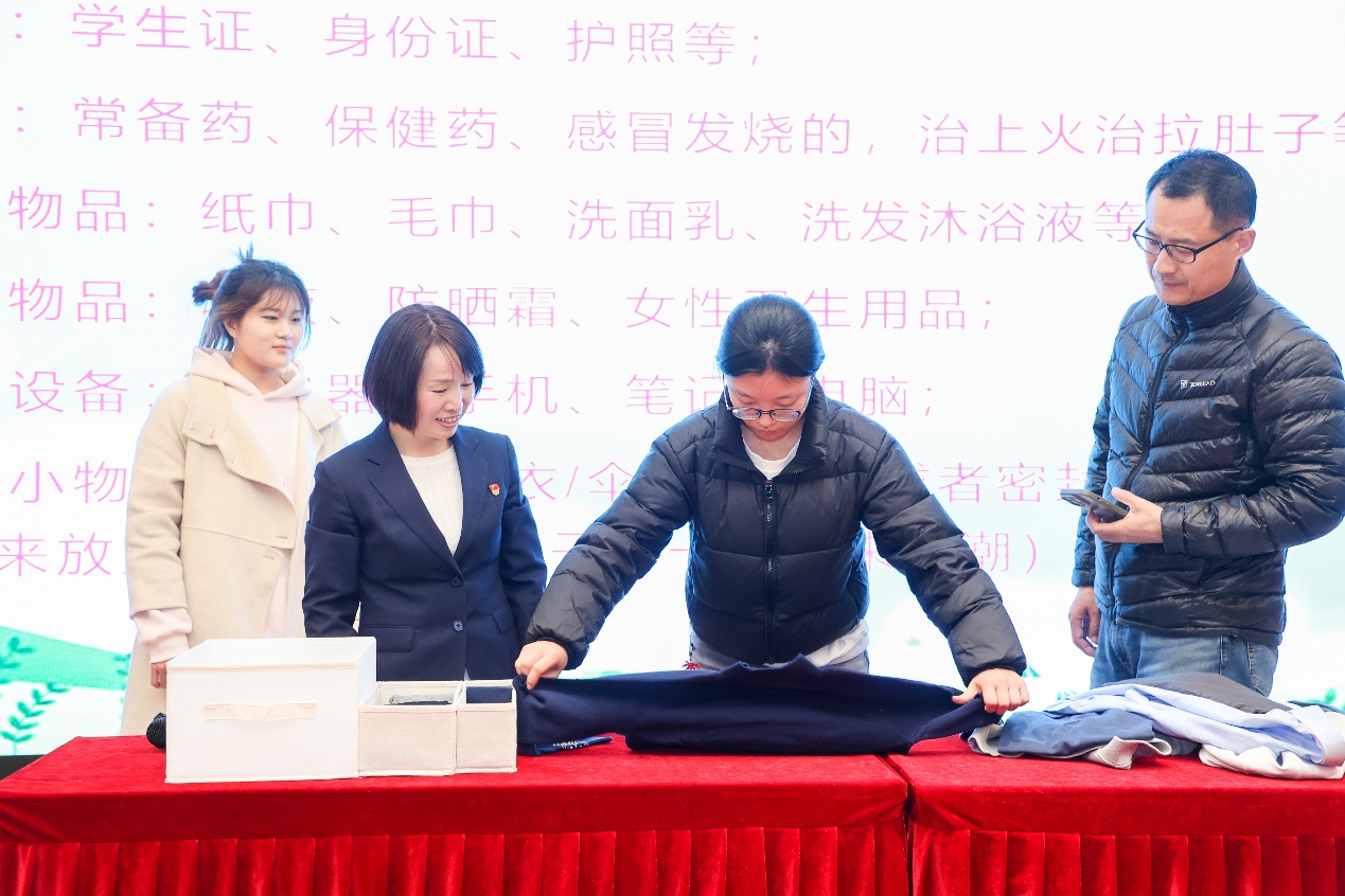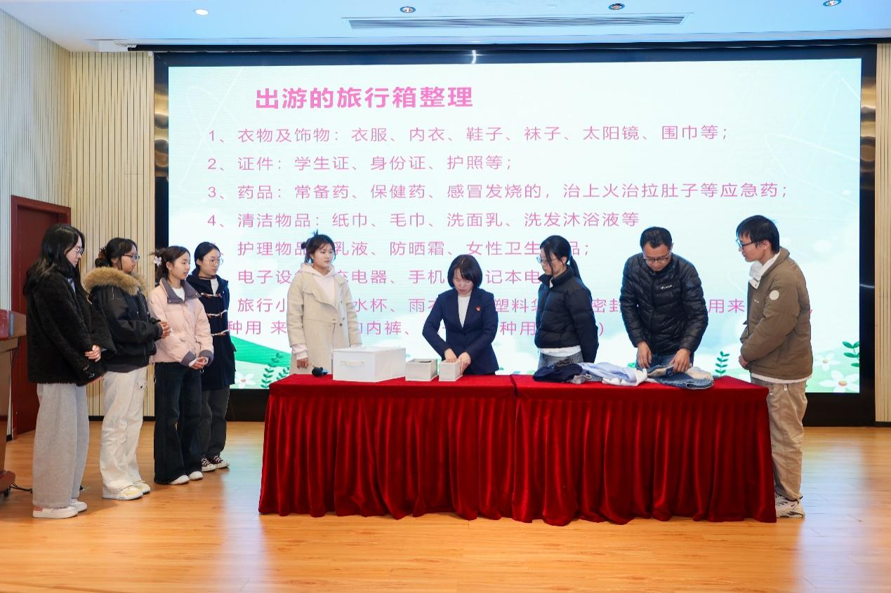 箱里究竟装着什么?在“劳模进校园”宣讲现场,朱春南就四张清单、三只环保袋、两条卷法、一只常用药品袋、一堆出行衣物的收纳和整理,有条不紊,娓娓道来。以此告诉青年学子,收纳不是简单的叠衣,而是赋予生活秩序;出行不是匆忙赶路,而是向世界传递温度。通过朱春南的细心讲述,参座的师生在现场作了实践和尝试,反响热烈,并对今后的出行和收纳有了清晰而良好的规划。