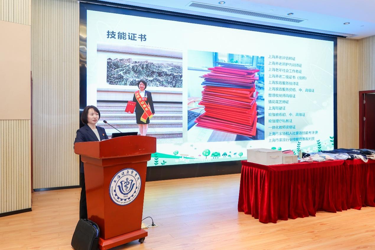 首先,朱春南讲述了个人二十二年来的从业经历。从无到有,从没有一定的文化底蕴到获得十八本国家职业资格证书,从体力的付出到技能的提升,不断的努力使朱春南成为上海开放大学民生学院行业导师、长三角家政服务标准起草者。