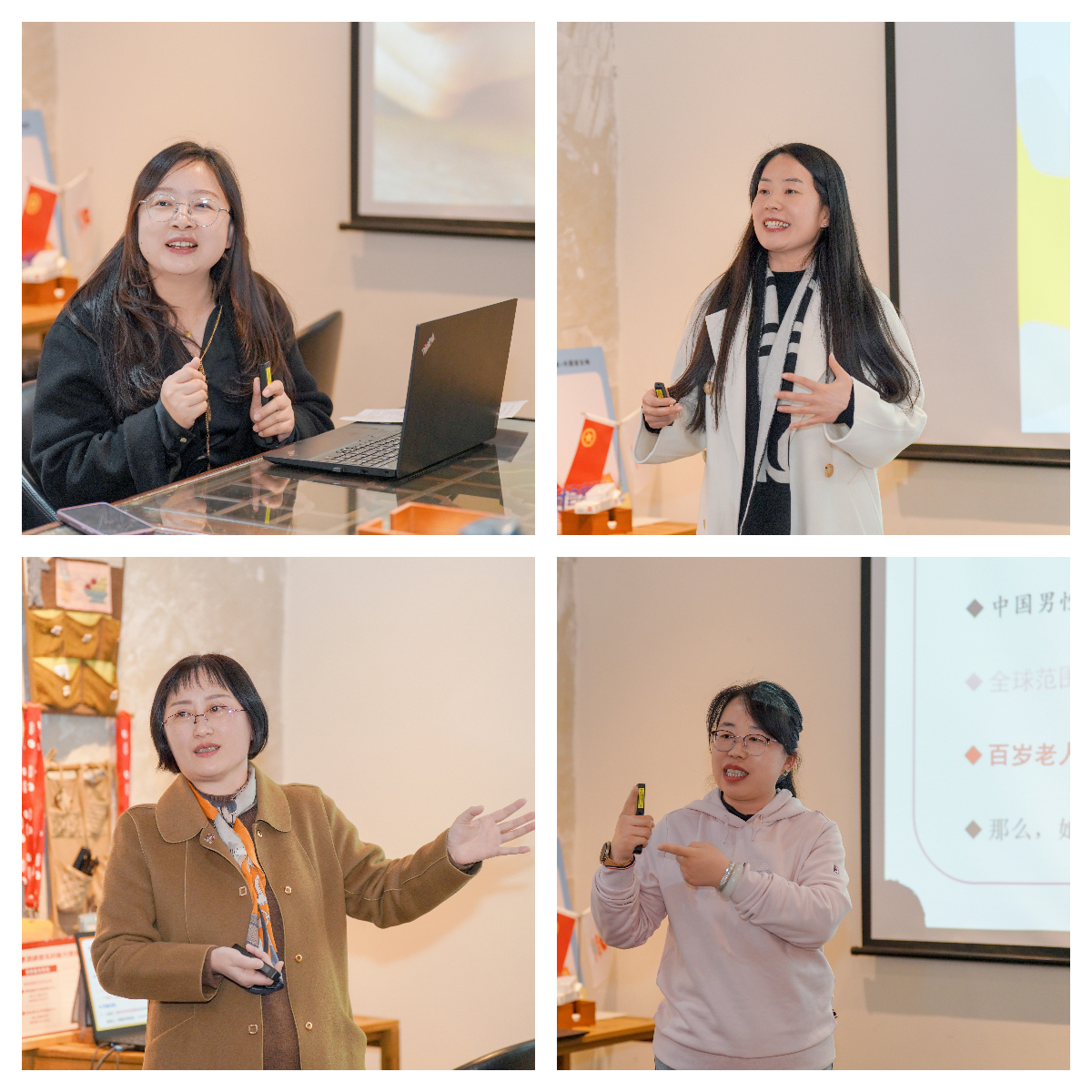 午餐过后,主题分享会正式拉开帷幕。会议由离退休工作部(处)郁建新副部长主持。来自不同部门的四位优秀女教授代表以身心健康、英语沟通及医药政策等切口进行了交流,带来了兼具科学深度与人文温度的精彩分享。王枫以《睡眠的智慧:校准属于你的身心节律》为题,呼吁用“向光而行”的节律管理和温柔仪式重建修复性睡眠;王利娜老师则结合自身经验,分享了《超越语言,沟通世界:出国英语口语》的实用技巧,轻松掌握出国场景下的实用表达与餐桌礼仪,鼓励大家勇敢开口、自信表达;王进聚焦《集采惠民,国药提质:药品集中采购与仿制药价值解析》,用翔实数据阐释国产优质仿制药如何通过一致性评价让好药真正“飞入寻常百姓家”;王婷婷则以《她绽芳华,女性健康》为主题,从X染色体的双重保障到乳腺与宫颈的“两大要害”,为女性全生命周期主动健康管理开出“彩虹饮食、情绪支持、规律睡眠”的五项行动清单。四场分享交织成一幅“科学守护健康、自信沟通世界”的动人画卷,点亮了岁末最温柔的学术之光。