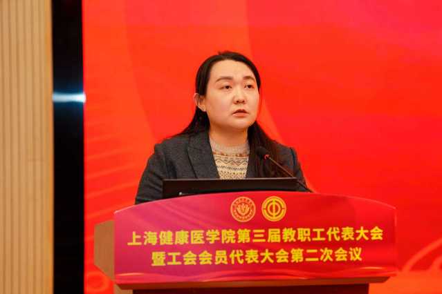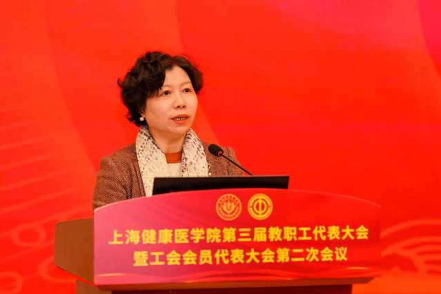 3月19日,上海健康医学院第三届教代会暨工代会第二次会议在北苑1号楼200人报告厅隆重举行。校长吴韬、党委副书记唐红梅,党委副书记、副校长王庆华,党委副书记、纪委书记周宁慧,副校长马耀良,副校长汤磊,副校长吴晓晖,全体代表、直属附属医院党政工领导代表共180余人出席会议。党委副书记、工会主席唐红梅主持大会。