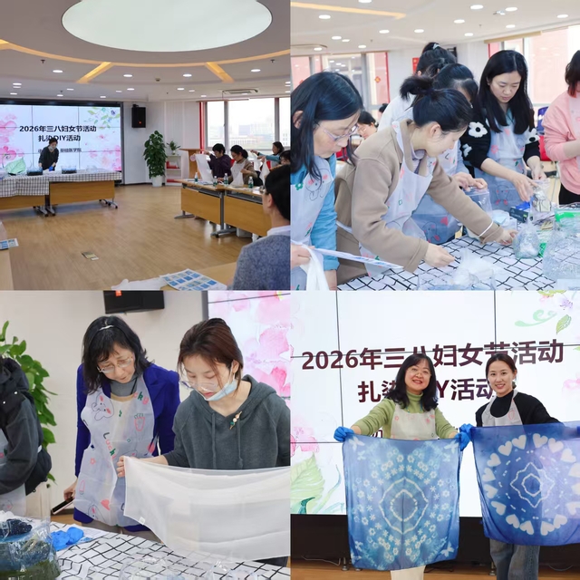 基础医学院工会开展扎染体验活动,女教职工在蓝白交织的晕染中,感受传统工艺的独特之美,一件件独一无二的扎染作品承载着对美好生活的期许。