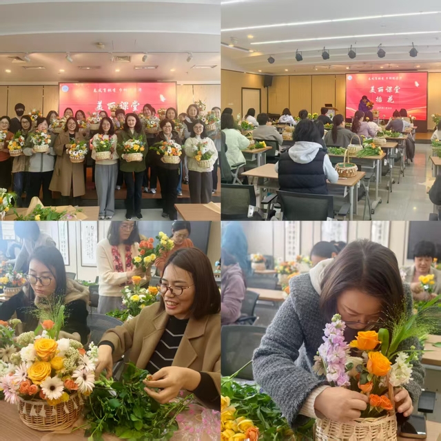 校工会(妇工委)主办“花漾时光·馨香雅韵”主题插花活动。专业花艺师从花材辨识、枝叶修剪、造型搭配等方面细致讲解,女教职工们兴致盎然创作花艺作品,在花香萦绕间围坐交流,尽显巾帼柔情与生活情趣。