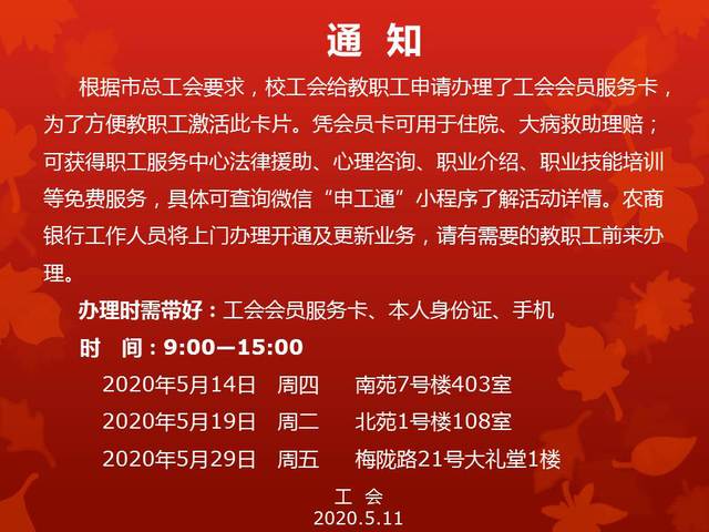 工会会员服务卡激活通知