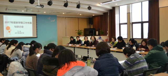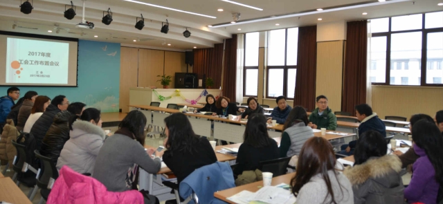 开学伊始,校工会组织校工会委员、校妇工委委员、校经审委员30余名老师于2017年2月21日下午一点在南苑7号楼403多功能会议室召开2017年度新学期工会工作布置与研讨会。于2017年2月23日中午召开二级工会主席2017年度工会工作布置会议。党委书记郑沈芳,党委副书记、工会主席李明磊出席会议。会议由工会常务副主席凌文惠主持。