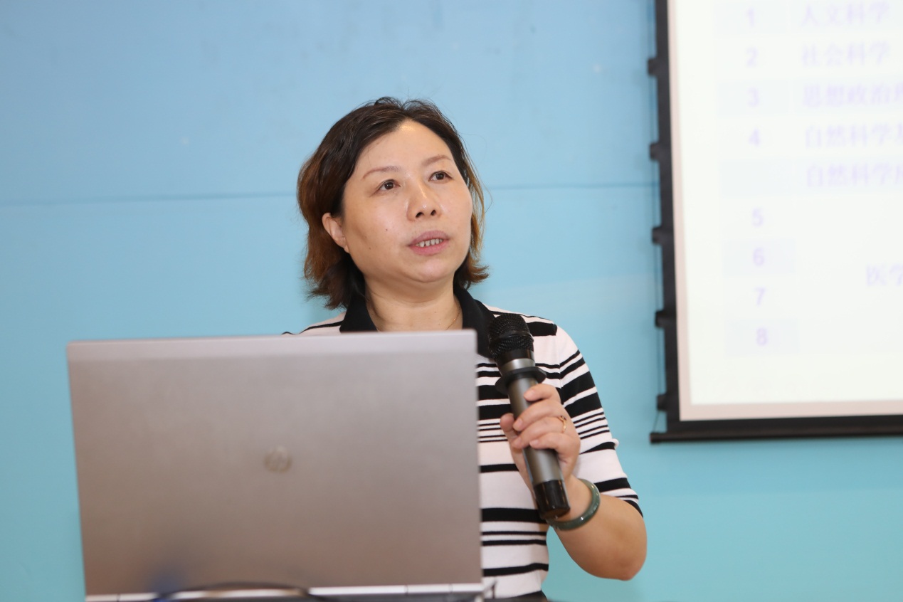 首先凌文惠代表校青教赛工作组作本届青教赛工作总结。她从学校初赛的情况和市赛选手的遴选、选手的备赛、工作组的赛前准备及本次市赛的参赛情况及赛后的体悟与到会的老师们共同进行了一次回顾和总结。她首先感谢青教赛工作组成员的通力合作。尤其为我校的本届青教赛选手克服困难、奋力拼搏而终获佳绩而由衷的感动。为在我校建校5周年之际,青年教师在市赛的平台实现历史性的突破,斩获1个一等奖,2个二等奖、3个三等奖及2个优秀奖的好成绩表示衷心的祝贺。最后她对为本次比赛作出努力的学校、学院各级领导和指导老师以三个“心”总结大家的辛勤付出:第一,有一颗积极推动青年教师成长、成才的“初心”:本着“以赛促教,争创一流”的目标,矢志不渝;领导重视,做好顶层设计,上下形成共识;校院两级联动,关注教师成长。第二,都有一颗悉心培育青年教师的“匠心”:老带新、传帮带,学院院长亲自带教,组团指导;往届参赛选手传经送宝、分享经验。第三、具有追求卓越的“恒心”:学校青教赛工作组不断对标,形成竞赛工作机制、奖励和激励机制,为青年教师的成长营造良好的氛围;参赛选手以“立德树人”为根本,以“上好一门课”为理念精益求精,奋力拼搏,力求在历练中不断成长。最后,她对今后如何更好地调动全校青年教师的参赛积极性以利于我校青年教师师资队伍建设作了反思。