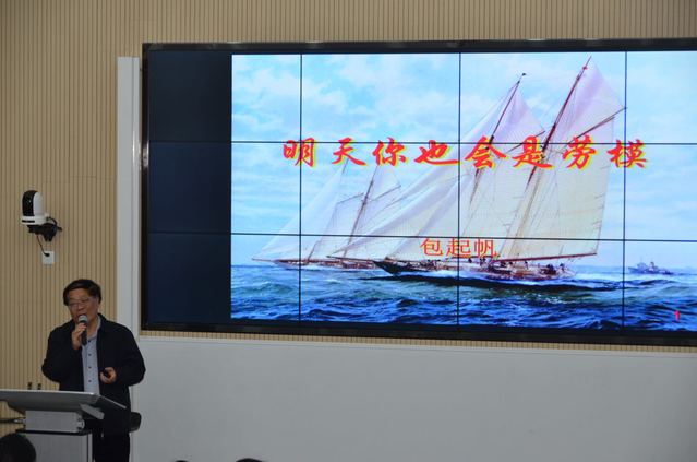 2017年11月9日下午,我校工会特邀著名全国劳模、“五一”劳动奖状获得者、享受国家特殊津贴、有突出贡献的优秀科技专家、高级工程师包起帆老师来校做劳模故事大讲堂的开讲人。师生教工200多人在学校南苑教学楼1楼报告厅聆听讲座,校工会常务副主席凌文惠主持。