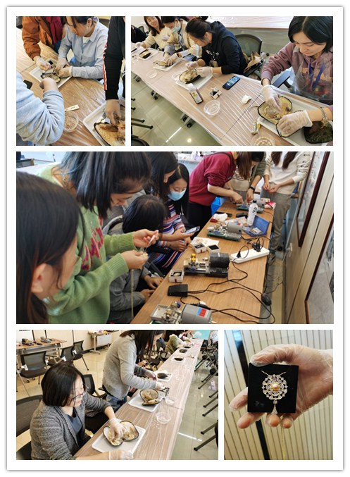 培训开始后,指导老师首先介绍了珍珠的形成、淡水珠的种类等相关知识,接着大家一起动手开蚌洗珠,抛光打磨,挑选优质珠打孔,选择自己细化的配饰,与珍珠亲密接触邂逅一场优雅时光,大家都玩的不亦乐乎!珍珠的圆润配上淡淡光泽,体现了东方女性温婉出尘、遗世独立的气韵。在活动中,大家都享受着自制礼物的乐趣,纷纷表示活动时尚而有生活气息!