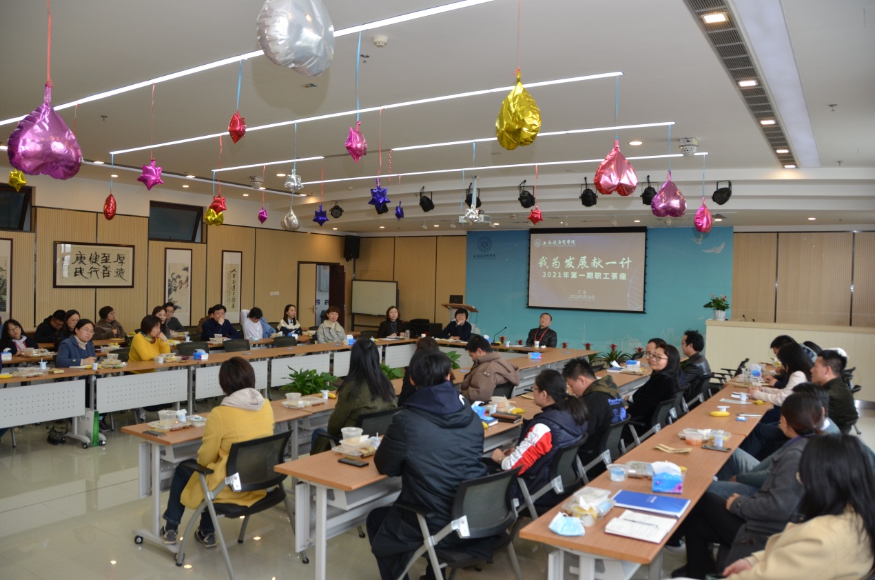 以“我为发展献一计”为主题的2021年第一期“教工茶座”暨校长午餐会3月18日中午在南苑7号楼403多功能会议室召开。校长黄钢、党委副书记于莹,党校办、人事处、科技处、教务处、教师工作部、后勤服务中心等部门负责人,各学院(教学部)、科研协同中心在职博士代表50余人参加会议,会议由工会常务副主席凌文惠主持。