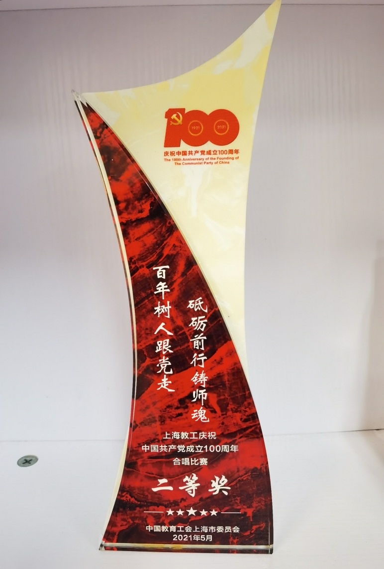 比赛分为初赛、决赛两个阶段。本次初赛采取线上视频展播形式由专家评委进行评审。3月份接上级工会下达比赛通知后,校工会携手教工合唱团进行人员和参赛的曲目确认,最终组建50余人的女生大合唱,演绎了《灯火里的中国》这首合唱曲目,经专家评审,从51支参赛队伍中脱颖而出,顺利进入决赛。决赛采用现场打分形式,当场宣布获奖情况。在决赛的25支队伍中,我校合唱团凭借优美的歌声征服了全场观众和评委们,最终获得二等奖的好成绩。