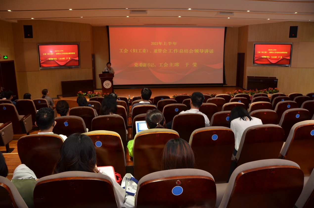 在本学期临近尾声之际,校工会于7月14日上午在北苑一号楼200人报告厅召开2021年上半年工会(妇工委)、退管会工作总结大会。党委副书记、工会主席于莹,工会常务副主席凌文惠、工会副主席芦静、工会兼职副主席郁建新,各学院、教学部及职能部门党总支及直属支部书记、校工会委员、经审委员,妇工委委员、退管会委员、退管分会主任、联络人,部门工会主席、委员百余人参加了本次会议。会议由凌文惠主持。