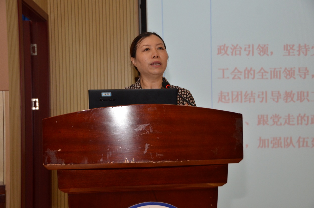 首先凌文惠做2021年度工会(妇工委)、退管会上半年工作总结。她从五个方面22项工作进行了工会工作总结:一、政治引领,坚持党对工会的全面领导,担起团结引导教职工听党话、跟党走的政治责任,加强队伍建设。二、结合党史学习教育,举办庆祝建党100周年主题系列活动。三、组队参加教育系统庆祝建党100周年系列活动。四、组队参加教育工会其他文体活动。弘扬劳模精神、工匠精神,树立时代楷模,挖掘身边的榜样。五、服务提质增效为目标,创新工作理念和方法。她也汇报了妇工委的四个方面11项工作:助力女大学生成长、评先推优、美丽课堂系列活动及庆祝建党百年主题活动;她从6个方面10项工作回顾了退管会上半年的工作:冬送温暖、服务保障、评先推优、组织参加建党百年庆祝活动、社团成立等工作。同时也对下半年部门内的重点工作做了部署。