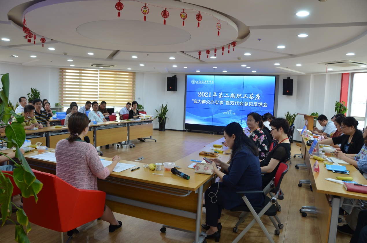 以“我为群众办实事”暨双代会意见反馈会为主题的2021年第二期“职工茶座”于7月15日中午在北苑1号楼500会议室召开。党委书记郭永瑾,党委副书记、工会主席于莹,党校办、人事处、财务处、科技处、规划处、教务处、后勤服务中心、保卫处、基建处、资产处、图书馆、信管中心、国际交流中心、国际教育学院等部门负责人,各代表团正副团长、部分教代表40余人参加会议,会议由工会常务副主席凌文惠主持。