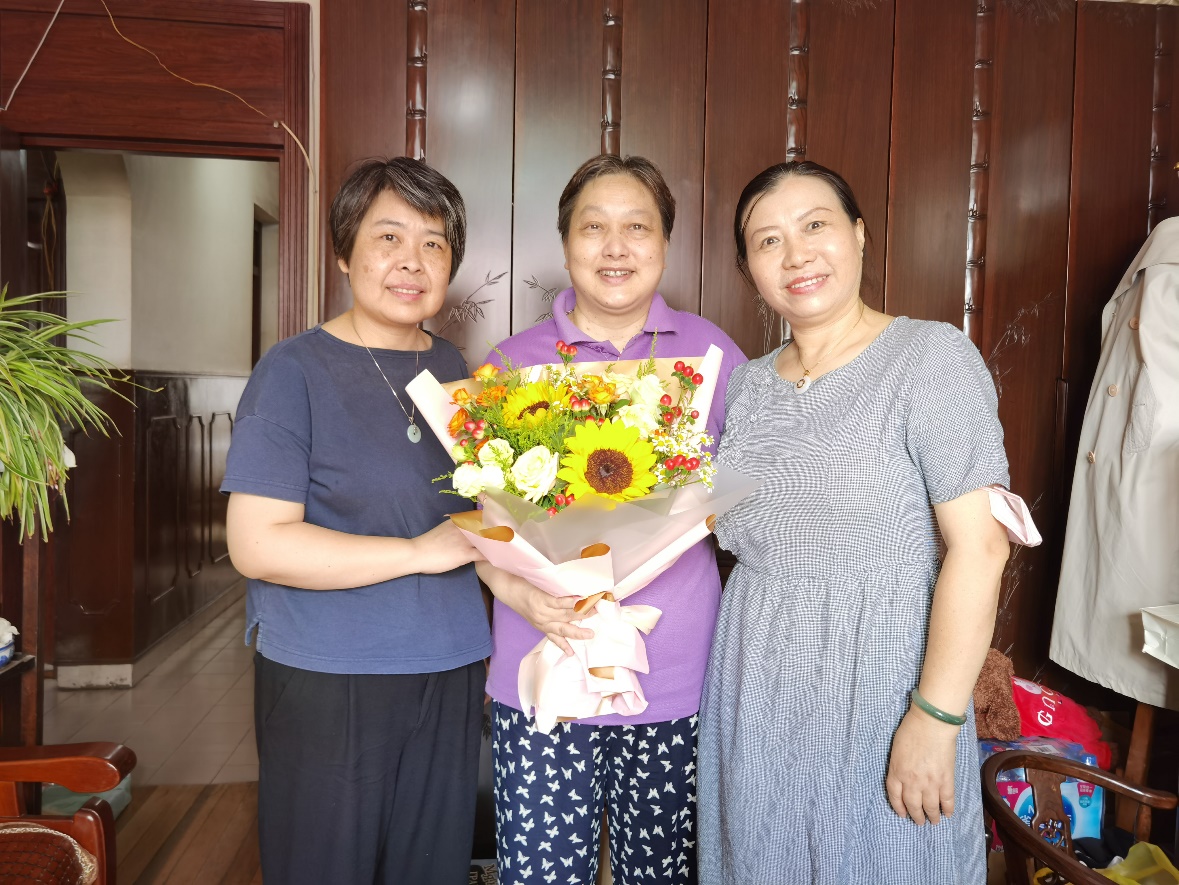 附属卫校文理思政教学部主任徐迪老师,长期从事一线教学和管理工作,业务能力强,乐于奉献。从教30年来,桃李满天,多次获得市级荣誉,近期还被评为上海市“四有”好老师提名奖称号。日前,校工会得知徐老师前不久患病手术,目前在家中休养,凌文惠、芦静及办公室主任李瑾一同前往家中进行慰问。徐老师感谢学校的关心,感恩帮助过她的所有人,她也表示会放松心态,积极配合治疗,争取早日康复继续为教育事业努力奋斗。