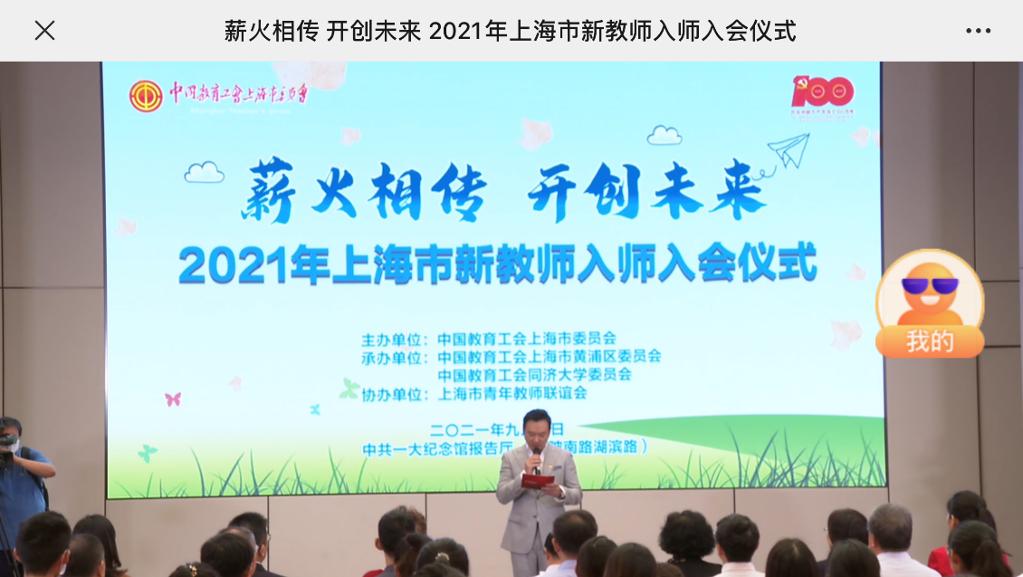 2021年上海市新教师入师入会仪式于9月10日上午9点在中共一大纪念馆报告厅举行。此次活动采取线上线下同步播放的形式进行,校工会组织本年度新进教职工进行线上收看。在黄浦区教工合唱团《不忘初心》的合唱中拉开了本次入会仪式序幕,市教育工会领导及部分高校工会主席向新教师代表颁发工会会员证及书籍,一批批的新教师加入到工会的大家庭中。我校新教工线上聆听了人民教育家于漪的为师“要领”和8位劳模先进教师对新教师们的谆谆教诲。也看到了杨德广老师同现场新教师进行的铿锵宣誓。