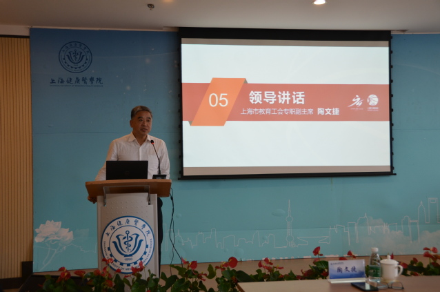 最后,陶文捷副主席讲话。他首先代表教育工会感谢上海健康医学院在疫情背景下勇挑重担、临危受命,承担了10月30日、31日的上海市第九届教工运动会篮球项目比赛;感谢上海市教职工篮球协会为备赛所做出的努力。他对比赛提出了四点希望:一是要不忘初心,凝聚人心。通过比赛,体现我们上海教职工健康向上的精神风貌;二是要顾全大局,在目前疫情防控常态化背景下,大家多理解、多配合、多包容,一起关心、组织好比赛;三是要互相尊重,尊重裁判、尊重队友、尊重对手,体现“友谊第一,比赛第二”的体育精神,通过比赛,结识更多的朋友,达到切磋球艺、增进友谊的目的;四是要安全第一,注意自我保护,落实好预防、应急防护措施,快快乐乐比赛,精力充沛更好的投入工作,并预祝比赛圆满成功!