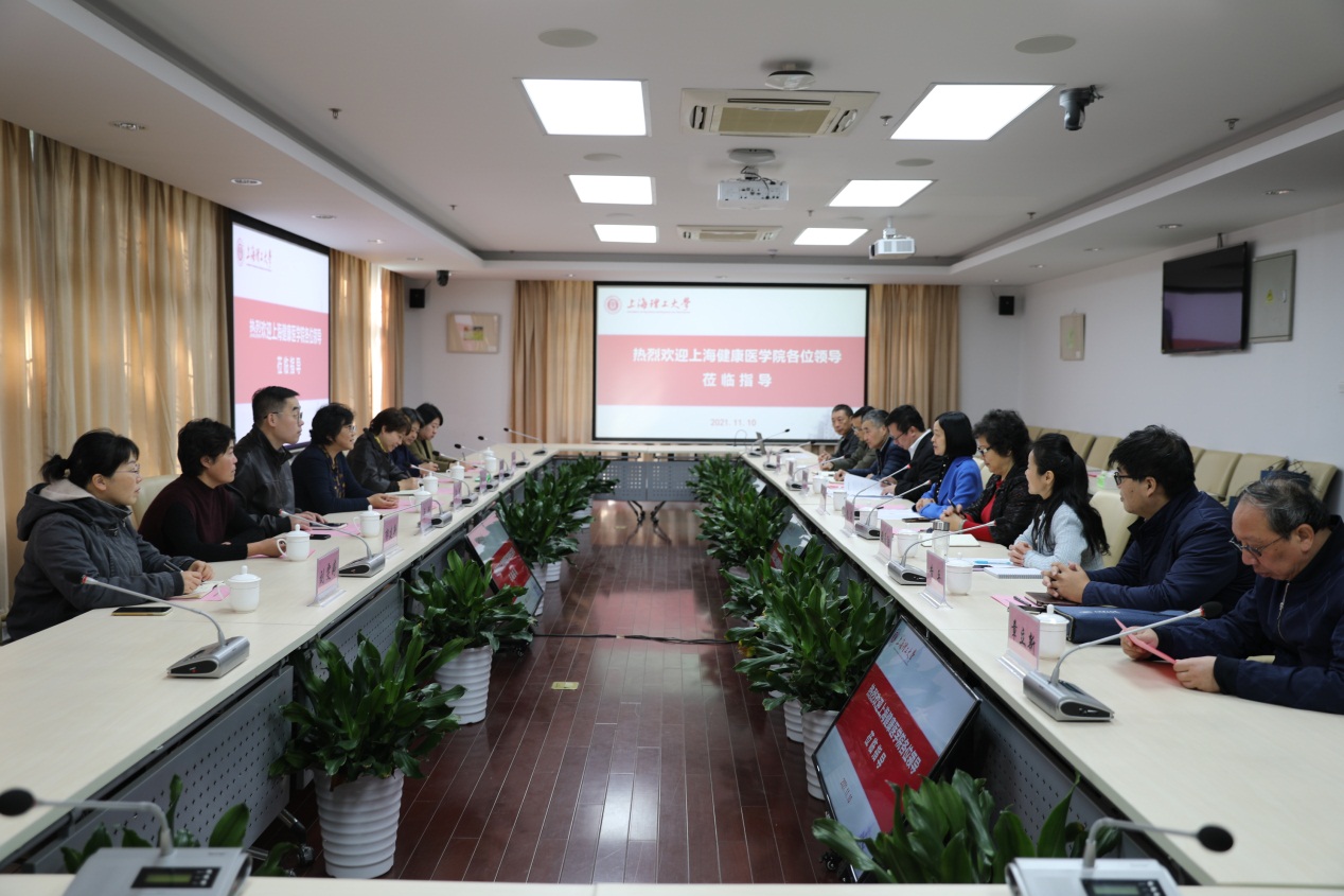 上海理工大学副校长蔡永莲致欢迎辞,对上海健康医学院于书记一行来访表示热烈欢迎,她回顾了两校深厚的办学渊源,并就学校办学历史、特色专业等方面进行了介绍。同时也提出,校工会要发挥自己的个性,继而返濮到学校的实质性发展中来,二校应多加强交流、学习的机会;于莹对上理工工会的热情接待表示感谢,她介绍了我校的办学特色、历史沿革和发展现状,并表示,希望通过相互学习,实现两校的协同发展和共同进步。